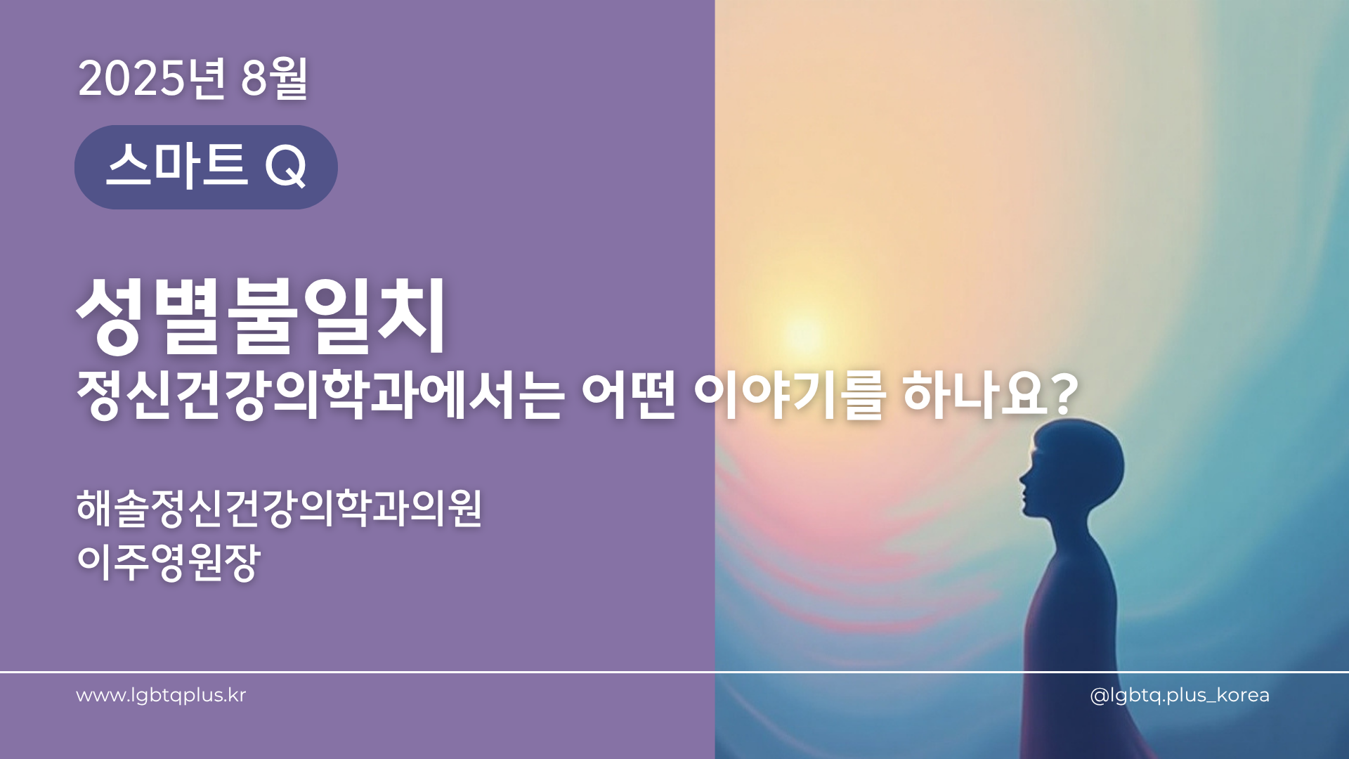 🩺 8월 [스마트Q] 온라인 건강강좌“성별불일치, 정신의학과에서는 어떤 이야기를 하나요?”