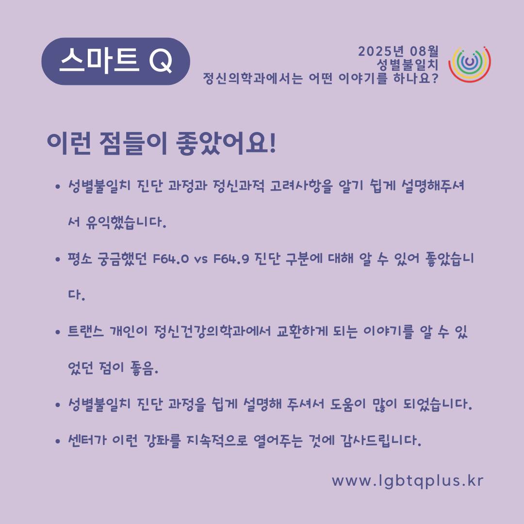 8์ [์ค๋งํธQ] ๊ฐ์ข์์๋ ์ฑ๋ณ๋ถ์ผ์น์ ์ ์ ๊ฑด๊ฐ์ ์ฃผ์ ๋ก