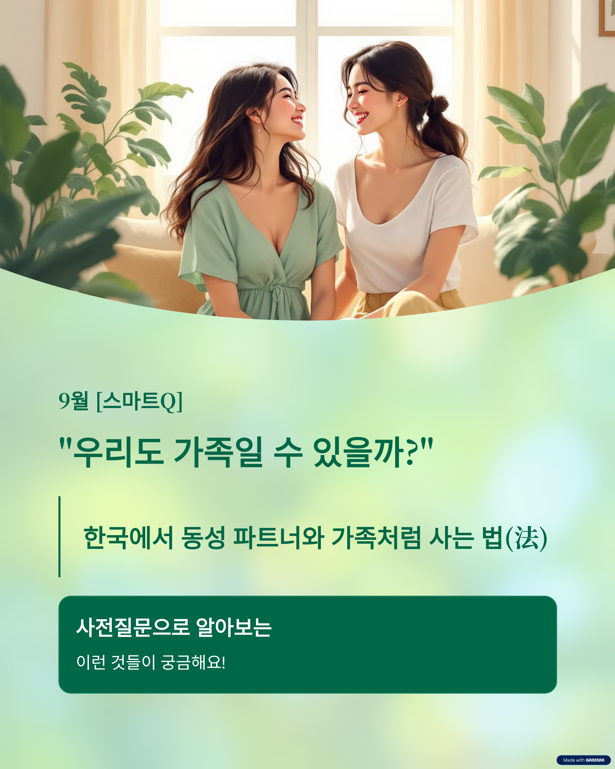 🩺 9월 [스마트Q] 온라인 건강강좌한국에서 동성파트너와 가족처럼 사는 법(法)