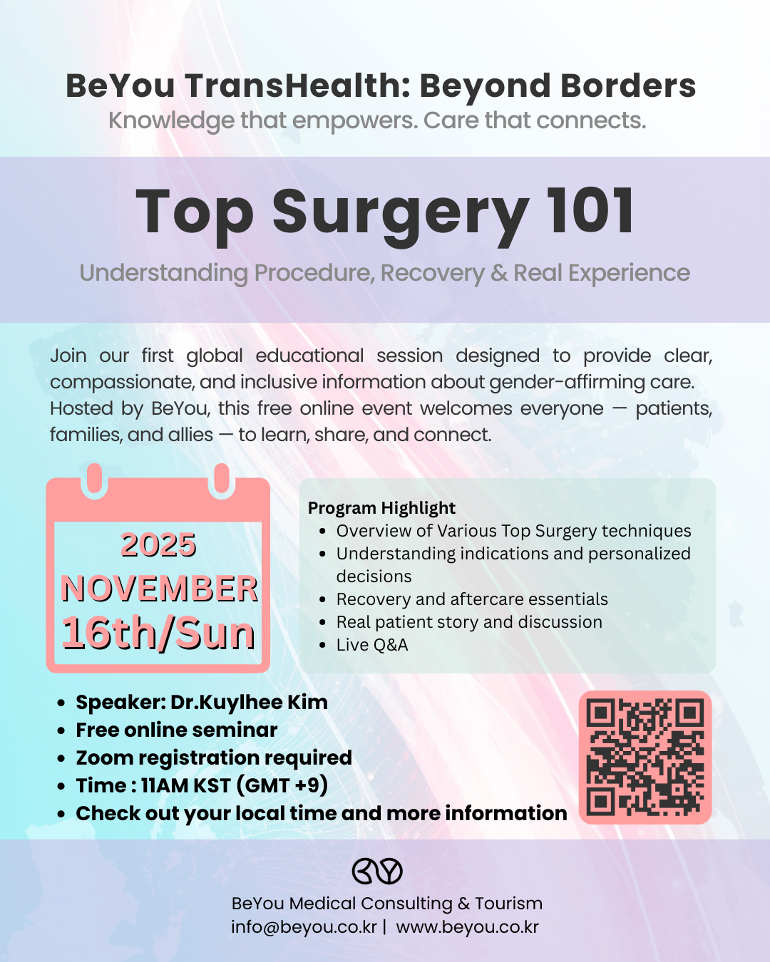 ์ด ์ค๋ 11์ 16์ผ(์ผ) ์ด๋ฆฝ๋๋ค. ์ด๋ฒ ํ๋ก๊ทธ๋จ์ โTop Surgery 101 โ Understanding Procedures, Recovery & Real Experiencesโ๋ฅผ ์ฃผ์ ๋ก, ๊น๊ฒฐํฌ๊ต์๋๊ณผ ์ค์ ์์ ์ ๊ฒฝํํ ํจ๋์ด ํจ๊ปํฉ๋๋ค. ํ์ฌ๋ ์์ด๋ก ์งํ๋๋ฉฐ, ํ๊ตญ์ ๊ฑฐ์ฃผํ๋ ์ธ๊ตญ์ธ ์ฑ์์์์ ๊ตญ์ ์ปค๋ฎค๋ํฐ ๊ตฌ์ฑ์์ด ์ ๋ขฐํ ์ ์๋ ์๋ฃ์ ๋ณด๋ฅผ ํจ๊ป ๋ฐฐ์ฐ๊ณ ๋๋ ์ ์๋๋ก ๊ธฐํ๋์์ต๋๋ค. BeYou๋ โAccess to gender-affirming information is a form of care(์ฑ๋ณํ์ ์ ๋ณด ์ ๊ทผ์ฑ ์์ฒด๊ฐ ๋๋ด์ด๋ค)โ๋ผ๋ ์ฒ ํ์ผ๋ก, ๋ชจ๋๊ฐ ์์ ์ ๋ชธ๊ณผ ์ ์ฒด์ฑ์ ์ดํดํ ์ ์๋ ๊ต์ก์ ์ฅ์ ๋ง๋ค์ด๊ฐ๊ณ ์์ต๋๋ค. ๐ |